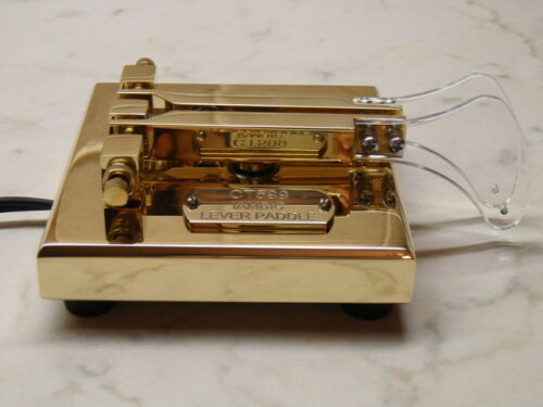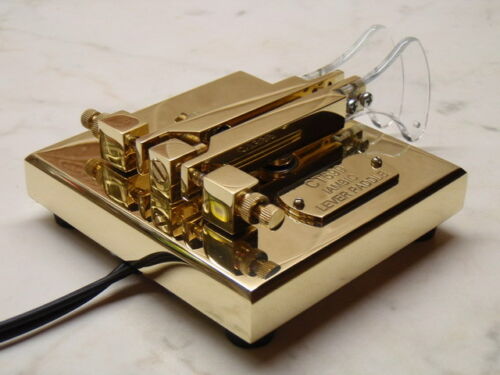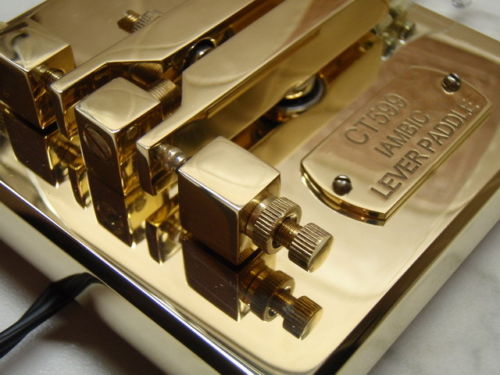 ★iambicはアイアムビックまたはアイアンビックと読みます。iambicという言葉はエレクトロニック・キーヤー(エレキーヤー)に関連している用語です。CT599のようなiambic方式対応のデュアルパドルをiambic方式対応のエレキーヤーにつなぎ、2枚のレバーの両方を内側に同時に押し続ける(スクイーズする)と、エレキーヤーは短点と長点を交互に自動的に送信し続けます。つまり2枚のレバーの両方を内側にスクイーズするだけで「−」「・」「−」「・」を送信します。同様に、ピリオドの「・−・−・−」や、+記号の「・−・−・」などの短点と長点を交互打鍵する文字も、スクイーズするだけで送信できます。当然ですが、iambic方式のエレクトロニック・キーヤーとパドルを組み合わせると、片方のレバーを押し続ければ短点を自動送出するし、もう片方のレバーを押し続ければ長点を自動送出します。他方、シングルパドル(レバーが1枚羽根のパドル)を使うか、またはiambicに対応していないエレキーヤーにつないで「C」を送信しようとするとき、電鍵のレバーを「−」「・」「−」「・」と4回も叩かなければなりません。